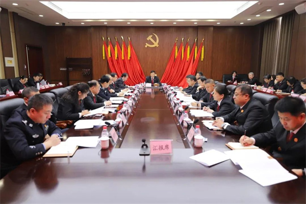 1月23日下午,大兴安岭中院召开党组(扩大)会议,传达学习贯彻全省中级法院院长会议精神。大兴安岭中院党组书记、院长杨瑞明主持会议并讲话。会议强调,全区法院要以全省中级法院院长会议精神为指引,全面贯彻落实党中央决策部署和省法院工作安排,准确把握会议精神,持续落实省法院“一要二统三抓实”工作思路,用好“三争晋先”总抓手,坚持干字当头,狠抓“九分落实”,以更加坚定的信念、更加务实的作风,严格公正司法,做实定分止争,把会议精神转化为推动司法工作的强大动力,为建设更高水平的平安兴安、法治兴安贡献司法力量,在中国式现代化的新征程中展现新担当、新作为。会议要求,全区法院一要坚持党的领导,筑牢司法政治根基;二要聚焦防范化解风险,全力维护安全稳定;三要服务发展大局,赋能地方经济腾飞;四要践行司法为民,坚守公平正义底线;五要坚持守正创新,激发司法内生动力;六要强化队伍建设,锻造过硬法院铁军。
