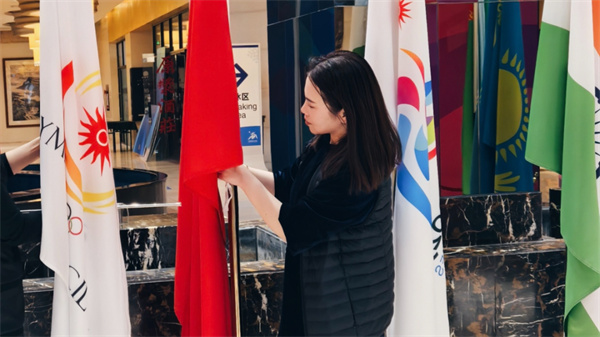 2025年2月7日,亚冬会在万众瞩目下如期开幕,赛事期间,我肩负起礼宾旗帜管理的任务,确保每一面旗帜都能以最正确、最规范的方式悬挂和展示。场馆内的每一面礼宾旗帜都是我和志愿者们熨烫平整、亲手悬挂的,看着一面面靓丽的旗帜在场馆内升起,我的喜悦与成就感也油然而生。同时,我还负责为到访运动员村的亚奥理事会官员、国际政要、国内贵宾提供礼宾服务,我致力于以无微不至的招待,确保每一位宾客都能感受到“尔滨”的温暖与真挚。希望通过这次亚冬会,向全世界展示我们哈尔滨的独特魅力与蓬勃生机,欢迎每一位远方的朋友,共赴这场冰雪盛宴!
