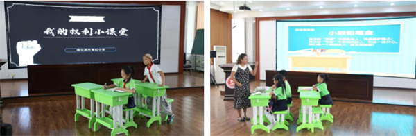 让法律更生动的诀窍在于将法律通过表演的形式呈现在受众面前。普法活动前,黑龙江高院精心准备了《小熊铅笔盒》和《我的“小钱包”保卫战》两个法治情景剧小剧本,并邀请学校老师和学生志愿者参演,内容涵盖未成年人压岁钱使用、校园欺凌、学生互助等场景。通过情景剧的形式,展现未成年人在面对生活中法律问题时的正确做法和错误行为,并由老师做最终讲评,引导他们从中吸取经验与教训。活动现场的学生们反映热烈,纷纷“扬言”要保护好自己的“小钱包”,再不乱花压岁钱,要帮助身边的小朋友。参加表演的同学也表示,体验了与平常不一样的生活,感觉很好、很有趣,觉得生活中处处都有法律,要遵守法律。