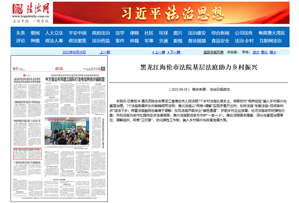 《法治日报》:黑龙江海伦市法院基层法庭助力乡村振兴