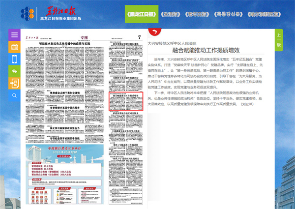 近年来,大兴安岭地区呼中区人民法院全面深化落实“五牢记五融合”党建实施体系,打造“党徽映天平 法槌护民心”党建品牌,实行“支部建在庭上、先锋亮在岗上”,让“第一身份是党员、第一职责是为党工作”的意识深植于心,推动干警将党性修养转化为司法办案的政治自觉,引导干警在“为大局服务、为人民司法”中走在前列,以高质量党建为法院工作赋能增效,以业务工作实绩检验党建工作成效,实现党建与业务双促进双提升。