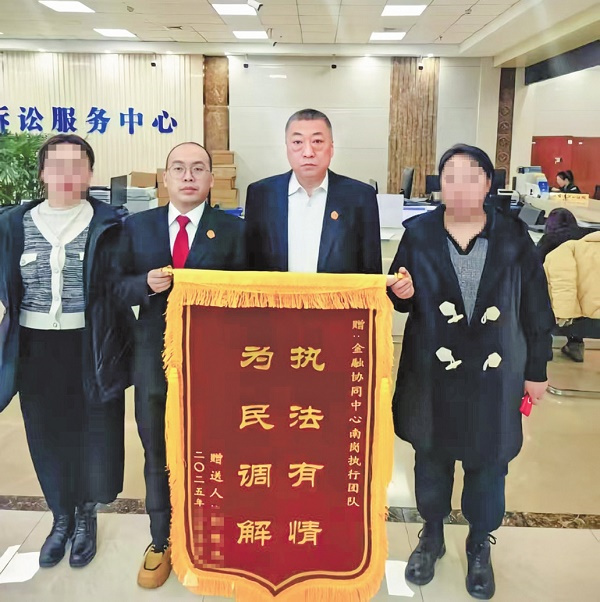近日,在黑龙江省金融司法协同中心,哈尔滨市南岗区法院派驻团队收到被执行人刘某送来的一面写着“执法有情为民调解”的锦旗,这面锦旗的背后,是一段法与情相融的暖心故事——