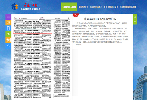 七台河市新兴区人民法院长兴法庭创新推行“多元联动解纷机制”,落实省法院部署,将司法服务延伸至田间地头,为乡村振兴筑牢法治根基。