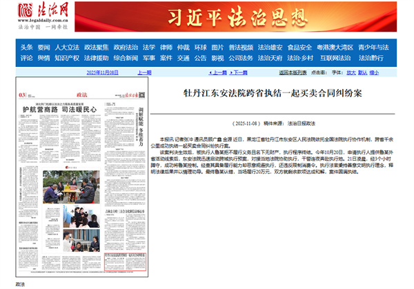 近日,黑龙江省牡丹江市东安区人民法院依托全国法院执行协作机制,跨省千余公里成功执结一起买卖合同纠纷执行案。