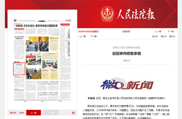 《人民法院报》:【黑龙江鸡东法院鸡林法庭】 巡回审判修复亲情