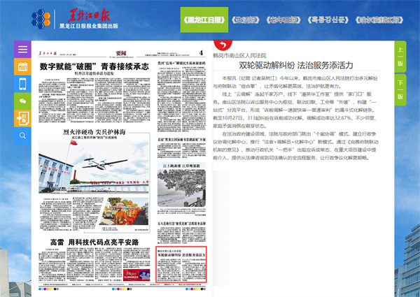 今年以来,鹤岗市南山区人民法院打出多元解纷与府院联动“组合拳”,让矛盾化解更高效,法治护航更有力。