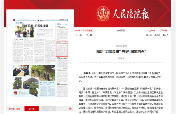 富锦坐拥“中国粮食仓储能力第一县”“中国绿色食品原料种植第一县”的美誉,更以“中国大豆之乡”“中国东北大米之乡”闻名遐迩。二龙山法庭立足辖区粮食企业集中、收购仓储环节法律风险突出的实际,通过联合派出所、司法所开展粮食仓储专项排查,整合多元解纷资源,及时化解潜在矛盾,优化企业生产环境;以数字赋能革新办案模式,开展涉粮企业巡回审判,运用“龙法和”云法庭线上调处异地纠纷,显著降低企业维权成本。结合劳务、合同等高频纠纷以案释法,编制宣传材料,组织精准入企普法。通过司法建议拓展审判效能,动态掌握企业司法需求,推动涉企纠纷同比下降35%。今年以来,二龙山法庭共快审快结涉粮企业案件5件,平均审理周期同比缩短18天。