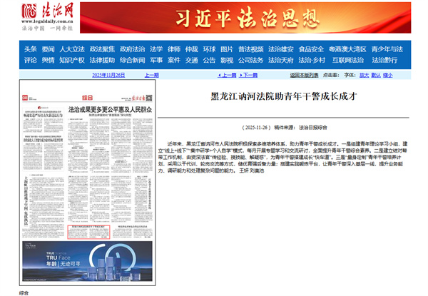 《法治日报》:黑龙江讷河法院助青年干警成长成才