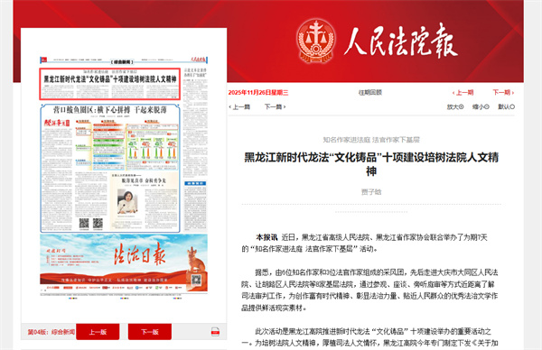 近日,黑龙江省高级人民法院、黑龙江省作家协会联合举办了为期7天的“知名作家进法庭 法官作家下基层”活动。