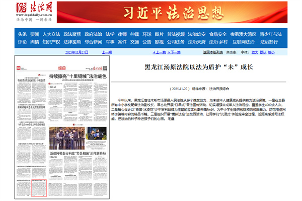 《法治日报》:黑龙江汤原法院以法为盾护“未”成长