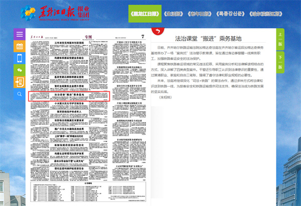 日前,齐齐哈尔铁路运输法院加格达奇法庭在齐齐哈尔客运段加格达奇乘务基地举办了一场“案例式”法治警示教育课,旨在通过身边事警醒一线乘务职工,加强铁路客运安全的法治保护。