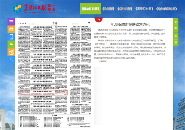 鸡西中院联合市政府拓展升级府院联动机制。立足贯彻落实关于加强新时代审判工作的意见现实需要,深化府院联动横向协同、纵向贯通、全域覆盖工作格局。