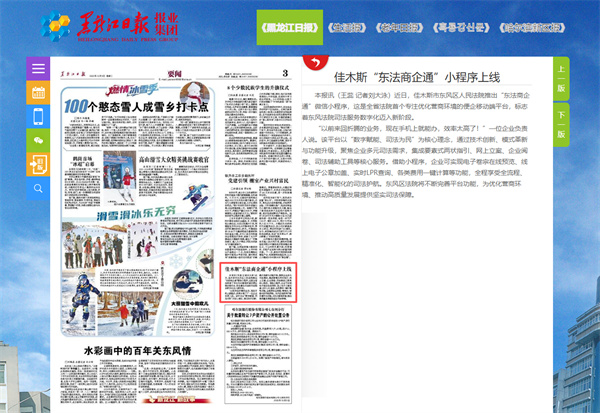 近日,佳木斯市东风区人民法院推出“东法商企通”微信小程序,这是全省法院首个专注优化营商环境的便企移动端平台,标志着东风法院司法服务数字化迈入新阶段。