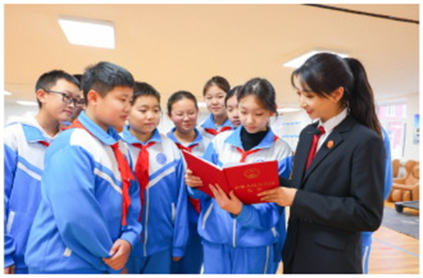 黑龙江省农垦中级法院干警近日走进哈尔滨市多个中学开展普法宣传。图为法官为风华中学学生讲解宪法相关知识。
