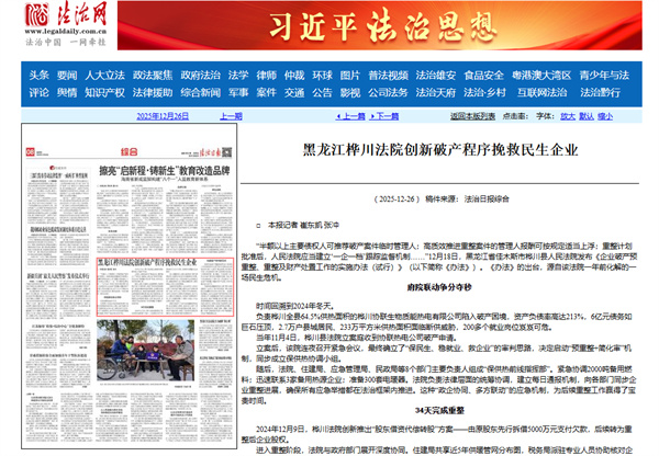 “协联热电重整案的成功,源于桦川法院创新的‘三向发力’破产审判机制。”桦川法院院长吴海鹏告诉《法治日报》记者,一是创新机制建设,出台《企业破产案件程序指引》等5项制度文件,构建覆盖破产程序全流程的规范化体系,通过“预重整+简化审”模式,案件审理周期缩短30%;二是深化府院联动,建立信息交流平台,实现与各部门信息即时互通,协同解决税收优惠、土地处置等复杂问题;三是司法职能前移,构建“诊断—调解—预重整—申请”全链条服务机制,采用“维度量化评估法”精准挽救企业。