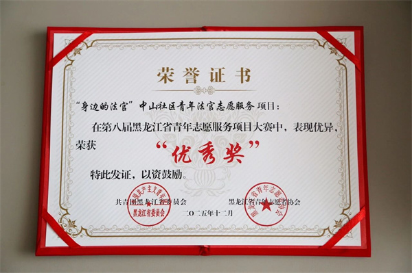 近日,由共青团黑龙江省委员会、黑龙江省青年志愿者协会主办的第八届黑龙江省青年志愿服务项目大赛暨2025年志愿服务交流会在哈尔滨圆满落幕。经过激烈角逐,鸡西中院的志愿服务项目脱颖而出,凭借鲜明特色与扎实成效斩获佳绩。