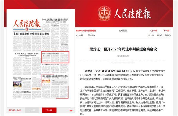 1月15日,黑龙江省高级人民法院党组书记、院长党广锁主持召开2025年司法审判数据分析研判会商会议,分析会商全省法院2025年司法审判数据,研究部署2026年审判执行工作。
