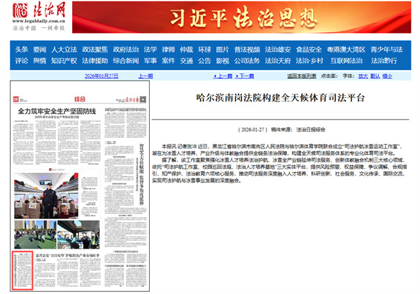 近日,黑龙江省哈尔滨市南岗区人民法院与哈尔滨体育学院联合成立“司法护航冰雪运动工作室”,旨在为冰雪人才培养、产业升级与体教融合提供全链条法治保障,构建全天候司法服务体系的专业化体育司法平台。