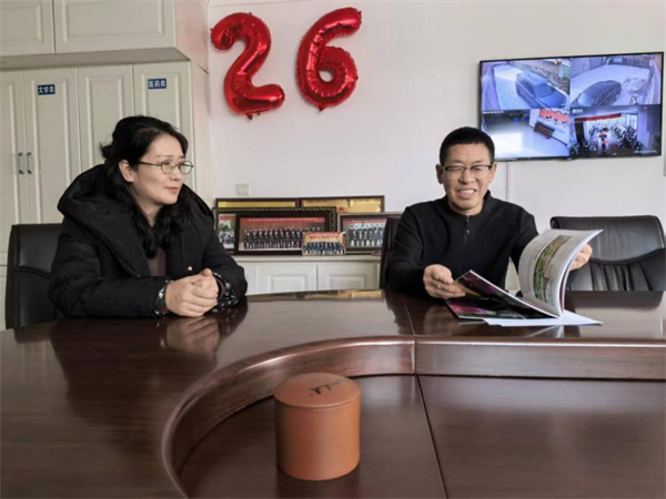 七台河茄子河区法院党组书记、院长胡华艳走访省人大代表、宏伟镇岚棒山村党支部书记李开利。