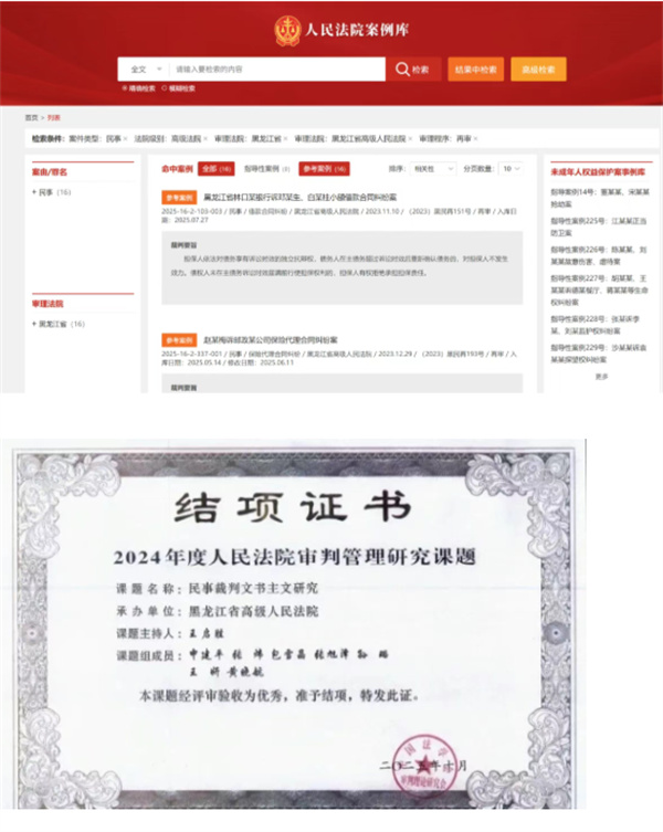 调研成果喜获丰收。共16篇案例入选人民法院案例库,位居全国地方法院一万余个民事部门第7位;《裁判文书主文研究》结项课题获评中国法学会审判理论研究会“优秀课题”奖;1篇论文、1篇调研报告获依法治省评选二个一等奖。深入研究形成“3表8例24答”《民事案件司法鉴定调研》,发条线供实践参考。