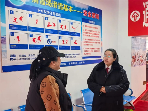 活动现场,干警针对游客关切的滑雪意外受伤责任认定、儿童滑雪安全监护义务等核心问题,结合真实案例用通俗语言讲解法律知识,指导群众运用法律维护自身权益,同时提醒游客文明旅游、强化安全防护意识。
