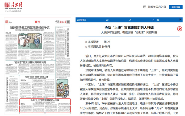 承办法官表示,该案的审结为打击电信网络诈骗上下游关联犯罪敲响法律警钟,也为广大群众尤其是老年群体防范新型诈骗提供了重要警示。
