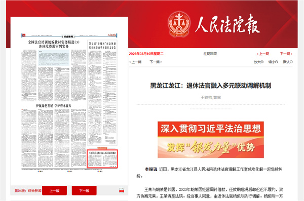 据悉,龙江法院积极构建“法院﹢退休法官调解工作室﹢乡镇(街道)﹢村(社区)”多元联动调解机制,形成矛盾纠纷分层过滤、递进化解的工作格局。