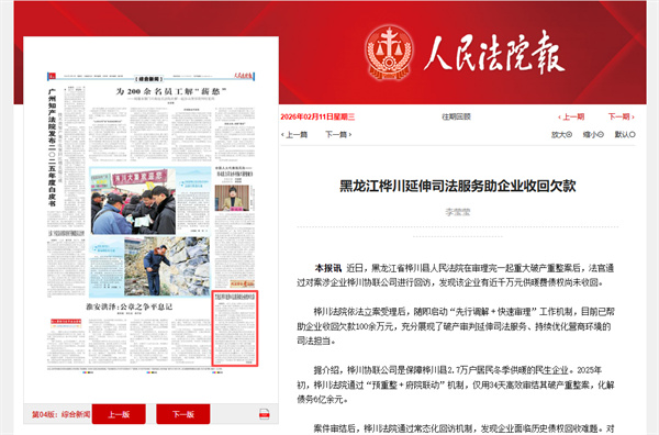 桦川法院依法立案受理后,随即启动“先行调解﹢快速审理”工作机制,目前已帮助企业收回欠款100余万元,充分展现了破产审判延伸司法服务、持续优化营商环境的司法担当。