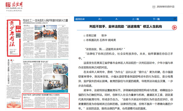 金林法院的少年审判法官们表示,将始终以法为翼,以专业与温情为托举之力,与社会各界一道,悉心护航每一位“迷途雏鹰”,助他们修正航向,重振羽翼,飞向属于自己的光明未来。