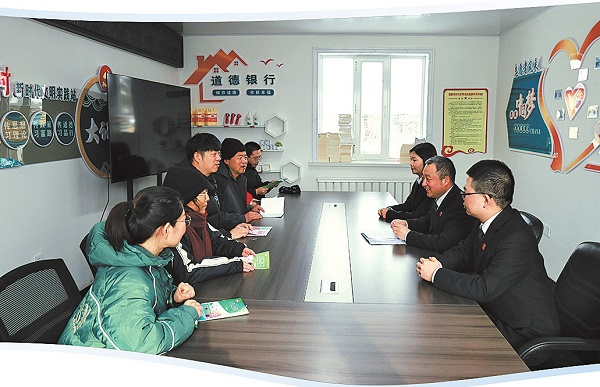 图②:友好区法院干警在爱国村村部向到场的村民普及借款纠纷相关的法律规定。