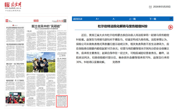 《法治日报》:杜尔伯特法院化解骑马受伤赔偿纠纷