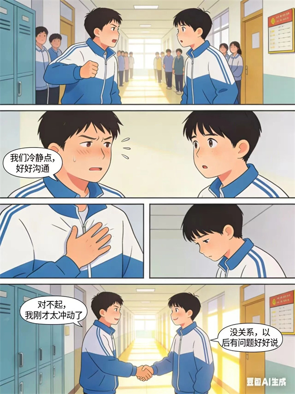 尊重他人、克制冲动,不辱骂、不暴力、不跟风、不参与欺凌,用文明化解矛盾。