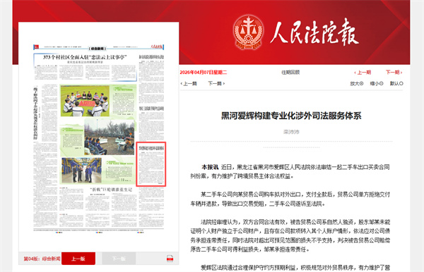 近日,黑龙江省黑河市爱辉区人民法院依法审结一起二手车出口买卖合同纠纷案,有力维护了跨境贸易主体合法权益。