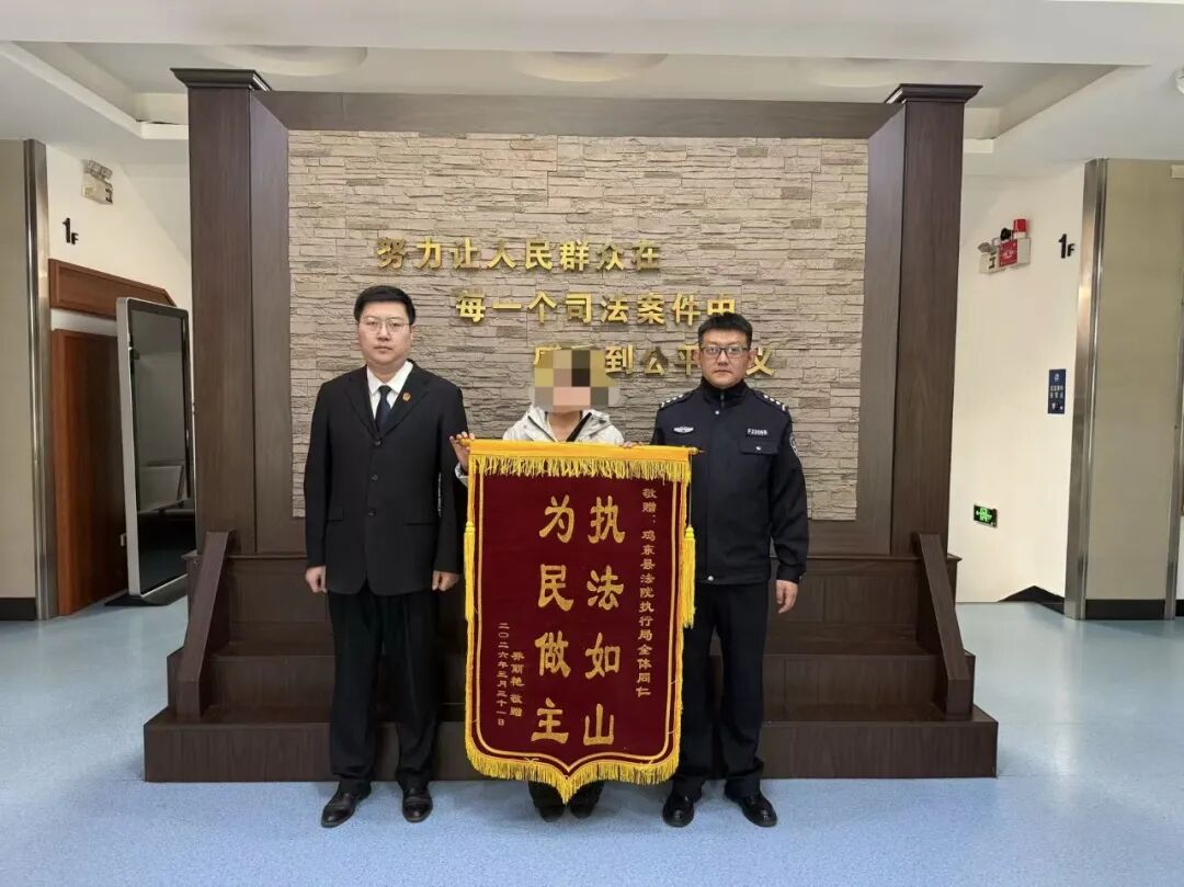 案件圆满执结后,乔某满怀感激,专程前往法院执行局,将一面印有“执法如山 为民做主”的锦旗送到执行干警手中,对法院急群众之所急、解群众之所难,以暖心高效举措保障农户春耕生产的担当作为,表达由衷的谢意。