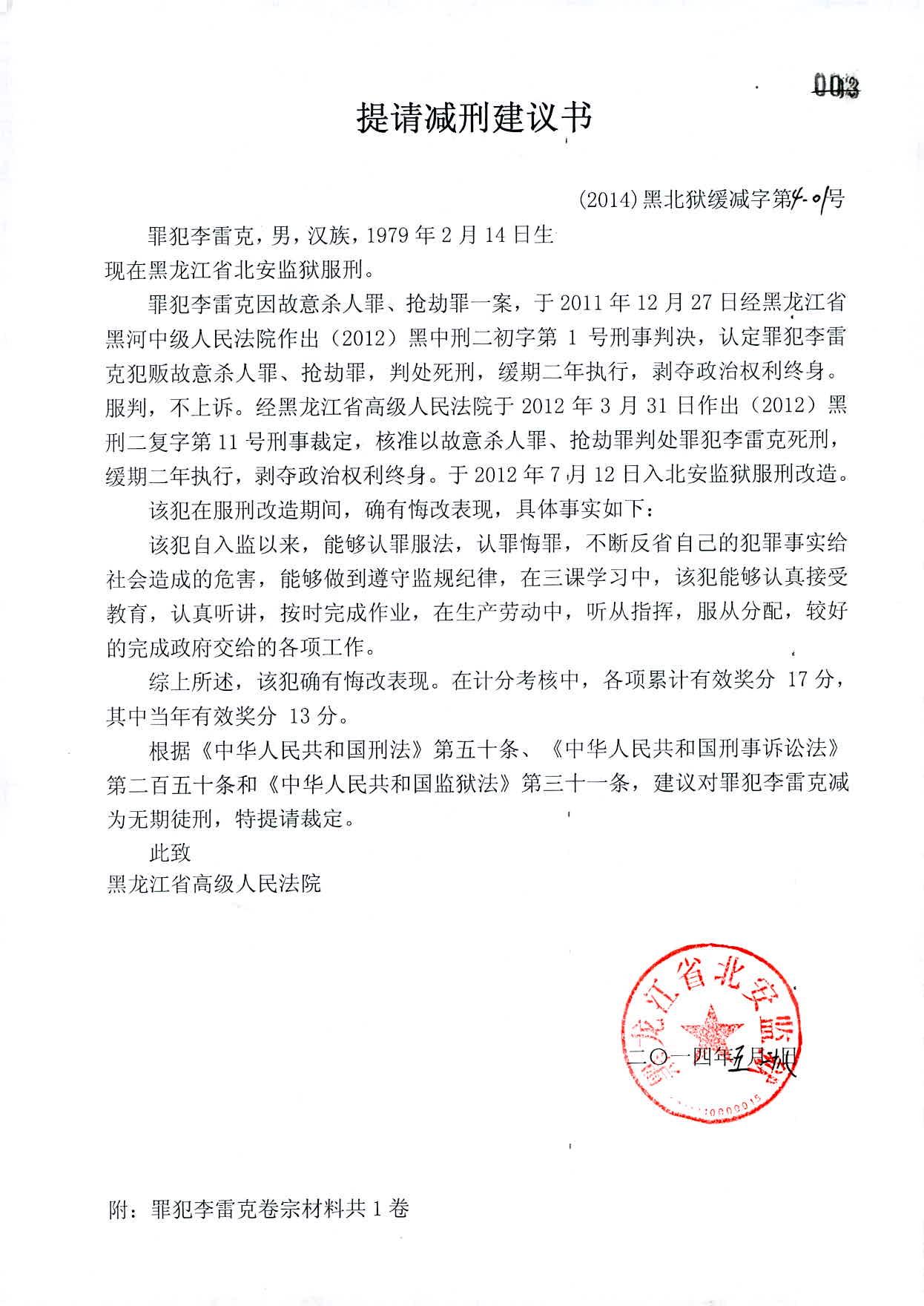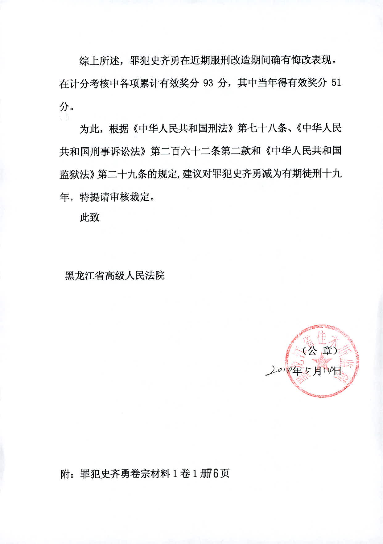 依照《最高人民法院关于减刑、假释案件审理程序的规定》第三条的规定,现将张长义、石瑶瑶、史齐勇、陈丽颖、昌凤叶、王金华、王彦彬、陈小六、张淑兰、李雷克等十名服刑人员的减刑材料依法向社会公示,公示期限为五日(自2014年7月29日至2014年8月2日)。如对上述服刑人员减刑有异议,可以通过电话或信函等方式向黑龙江省高级人民法院审监一庭反馈。