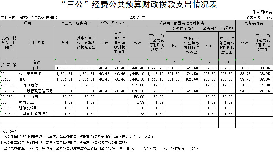 黑龙江省高级人民法院“三公”经费公共预算财政拨款支出表 发布时间:2015-09-28 08:56:28