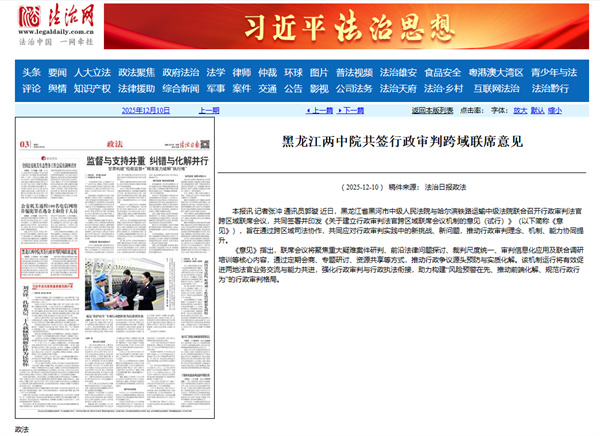《法治日报》:黑龙江两中院共签行政..