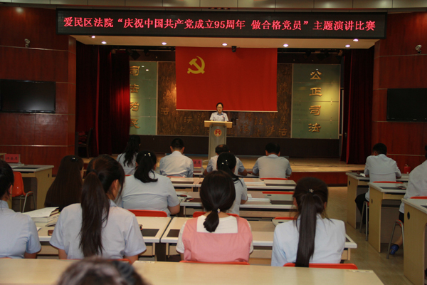 为庆祝中国共产党成立95周年,牡丹江市爱民区人民法院组织全体党员干警开展了“庆祝中国共产党成立95周年 做合格党员”主题演讲比赛。7月1日下午16时,全体党员干警准时出席演讲比赛,评委、计分员、合分员、主持人、参赛选手纷纷就座,爱民区法院“庆祝中国共产党成立95周年 做合格党员”主题演讲比赛正式拉开了帷..