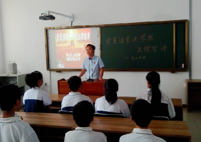 7月1日,鸡西市恒山区人民法院审判员李晓冬一行5人为恒山区恒山中学的全体师生上了一堂法制课。这是区法院在做好各项审判工作的同时,为和谐社会的构筑提供强有力司法保障而开展的送法进校园活动之一。法官把身边发生的一些典型案例和一些与同学们生活息息相关的法律问题相结合,深入浅出地给同学们作了分析讲解,..