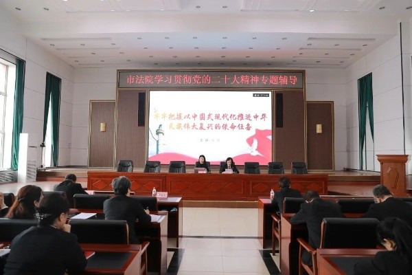 为深入贯彻落实党的二十大精神,切实把党员干部的思想和行动统一到会议精神上来,按照市直机关工委的安排部署,4月7日,伊春中院举办学习贯彻党的二十大精神专题辅导,邀请伊春市委党校副教育长、科研决策部主任、副教授刘琦为干警作题为《牢牢把握以中国式现代化推进中华民族伟大复兴的使命任务》的专题讲座。刘琦..