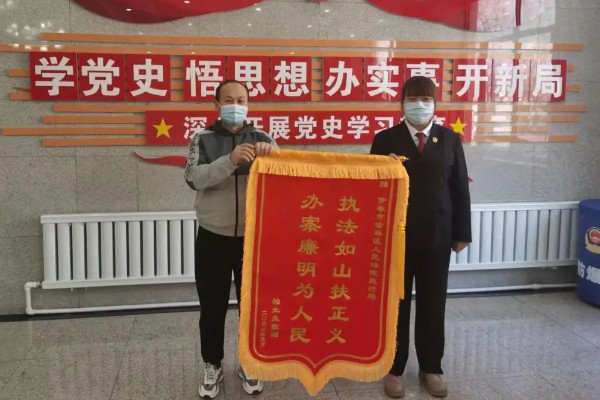 3月2日,申请执行人柏某某来到伊春市金林区法院,柏某某激动地说:“我的官司快两年了,没想到在执行局这么快拿到了钱!”,同时将一面书写有“执法如山扶正义,办案廉明为人民”的锦旗送到了执行局干警手中,以表达对伊春市金林区法院执行局高效执行,切实维护申请执行人利益的感谢。申请执行人柏某某与被执行人张..