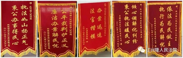 12月初,一周内红兴隆法院连续收到5面锦旗。在开展“集中执行”专项活动中,红兴隆法院宏图人民法庭精心部署、狠抓落实,执行战果捷报频传。黑龙江红兴隆农垦科益农农业生产资料有限公司为表达感谢,将两面锦旗赠予红兴隆人民法院和宏图人民法庭,高度赞扬干警秉公办案、公平裁判。被告刘某某父子,在宏..