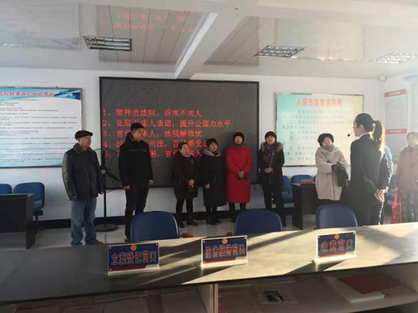 12月11日上午,鹤岗市住房公积金经办中心工作人员走进鹤岗中院,了解法院建设,感受阳光司法。在讲解员的带领下,大家走进立案大厅,在了解了立案大厅基本建设后,讲解员还介绍了法院为深入践行“打官司不求人”承诺开通的“网上立案”和“跨域立案平台”功能,大家听后,纷纷称赞法院为老百姓打官司提供司法便利。..