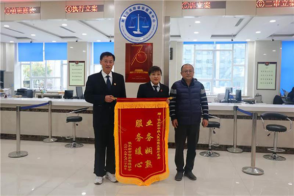 诉讼当事人向佳木斯中院赠送锦旗
