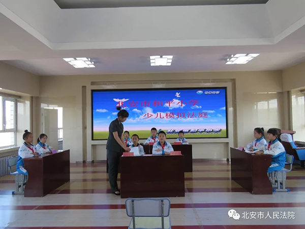 近日,随着庄严的法槌声响起,在北安市和平小学校园内一场不一样的庭审活动正在进行。这是由和平小学的学生们分别扮演法官、公诉人、被告人、辩护人的模拟法庭,也是他们人生中第一次与法律的零距离接触。为了增强未成年人的法律意识,减少未成年人犯罪,北安市法院举办了少儿模拟法庭进校园活动。北安法院刑事审判..