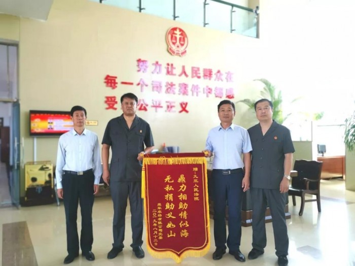 8月19日,一面写有“鼎力相助情似海 无私捐助义如山”的锦旗被送到了九三法院大厅。锦旗来自黑龙江北大荒农垦集团荣军农场有限公司,用以表达九三法院在荣军农场有限公司遭受水灾时的无私捐助。“一方有难,八方支援”,荣军农场有限公司在7月19日晚遭受特大暴雨导致部分住房、农作物及公路大面积受灾。九三法院发..