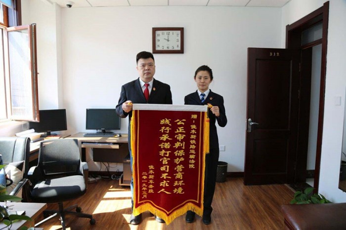 近日,佳木斯铁路运输法院成功调解一起争议较大的案件,为铁路企业挽回经济损失15万余元。铁路企业送来一面写有“公正审判保护营商环境 践行承诺打官司不求人”的锦旗以示感谢。2017年末,原告中国铁路哈尔滨局集团有限公司佳木斯车务段与被告汤原县香兰镇铁路装卸队签订了《铁路货物装卸业务合同》,双方约定将原告..