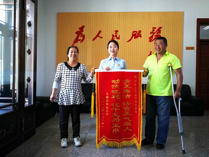 近日,当事人张某将一面书写有“清正廉洁 法官正气服人 动情晓理 化干戈为玉帛”的锦旗送到北安农垦法院,感谢法官公正办案。2015年12月20日,张某因交通事故受伤被送到农垦北安管理局中心医院治疗,经诊断为双侧股骨干骨折、右侧桡骨远端骨折、右踝关节脱位、鼻骨骨折。2016年1月11日张某伤情好转出院,2016年5月3..