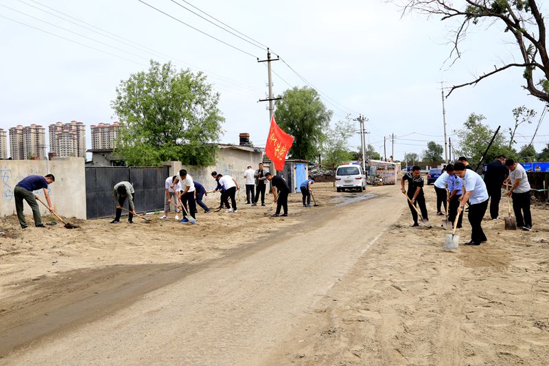为丰富特色主题党日活动,亮化美化周围环境卫生,6月13日、14日,齐齐哈尔市铁锋区法院党总支书记卢振良、副书记邵宇带领铁锋区法院40余名党员干部在铁锋区新发村开展了“特色主题党日、义务劳动”活动。活动中,党员们充分发挥乐于奉献、服务群众的精神,对新发村周围的垃圾、杂草、“牛皮癣”广告等进行集中清理..