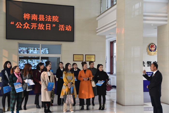 为进一步深化司法公开,推进司法民主,增进社会各界对法院工作的了解,10月20日,桦南县人民法院举办“法院开放日”活动,邀请县乡妇联干部、人民监督员、公安局、检察院部分干警60余人,走进法院,零距离感受法院审判工作。该院向参观人员们发放了桦南法院“公众开放日”暨作风整顿征求意见表及桦南县人民法院概况..